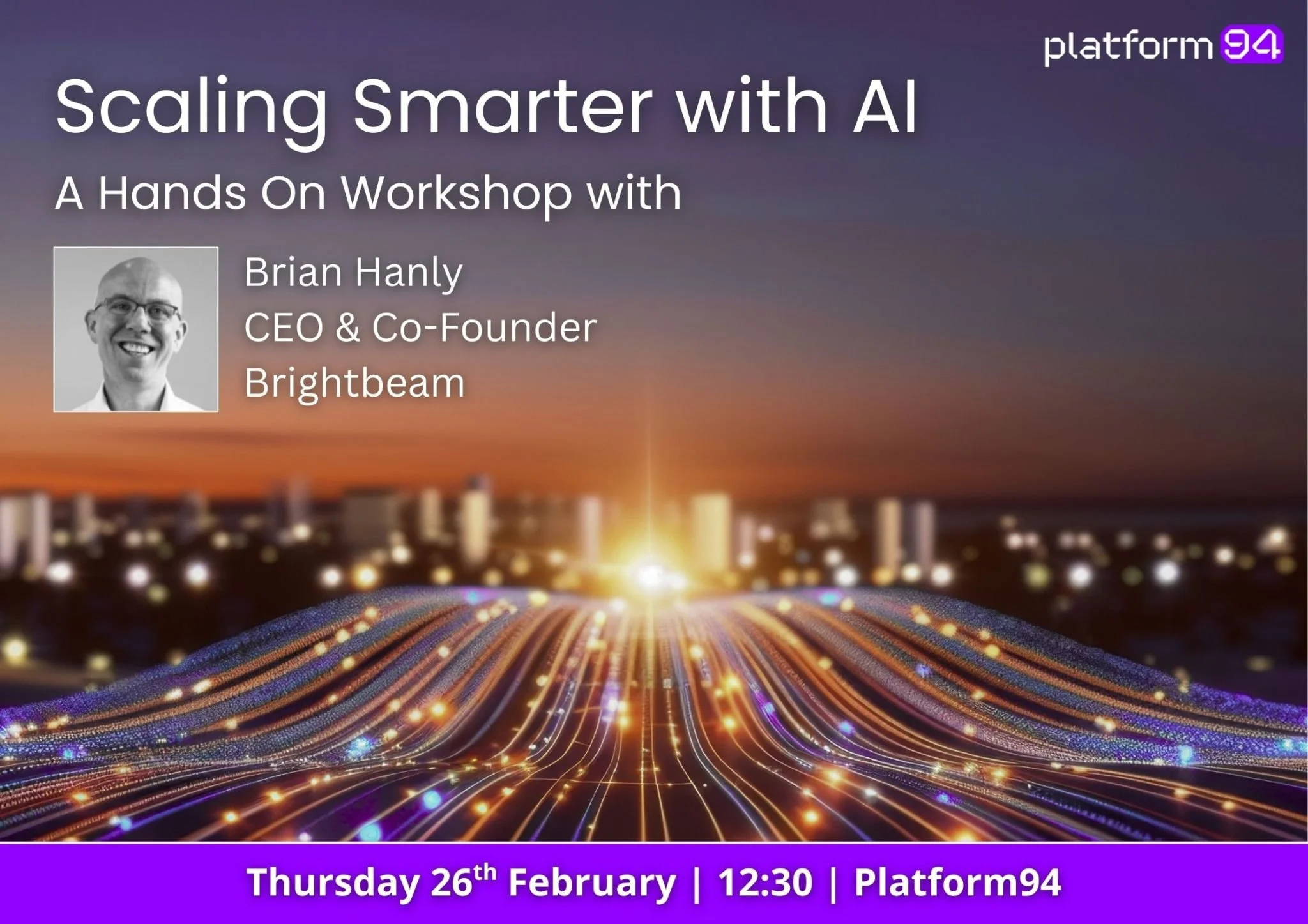 Following our 2026 Business Outlook findings, which highlighted a clear gap between AI ambition and real-world implementation, we’re delighted that SCALE by Platform94 community founder Brian Hanly, CEO & Co-Founder of multi award winning AI transformation organisation Brightbeam, has kindly offered to host a hands-on, practical complimentary workshop for our community leaders.